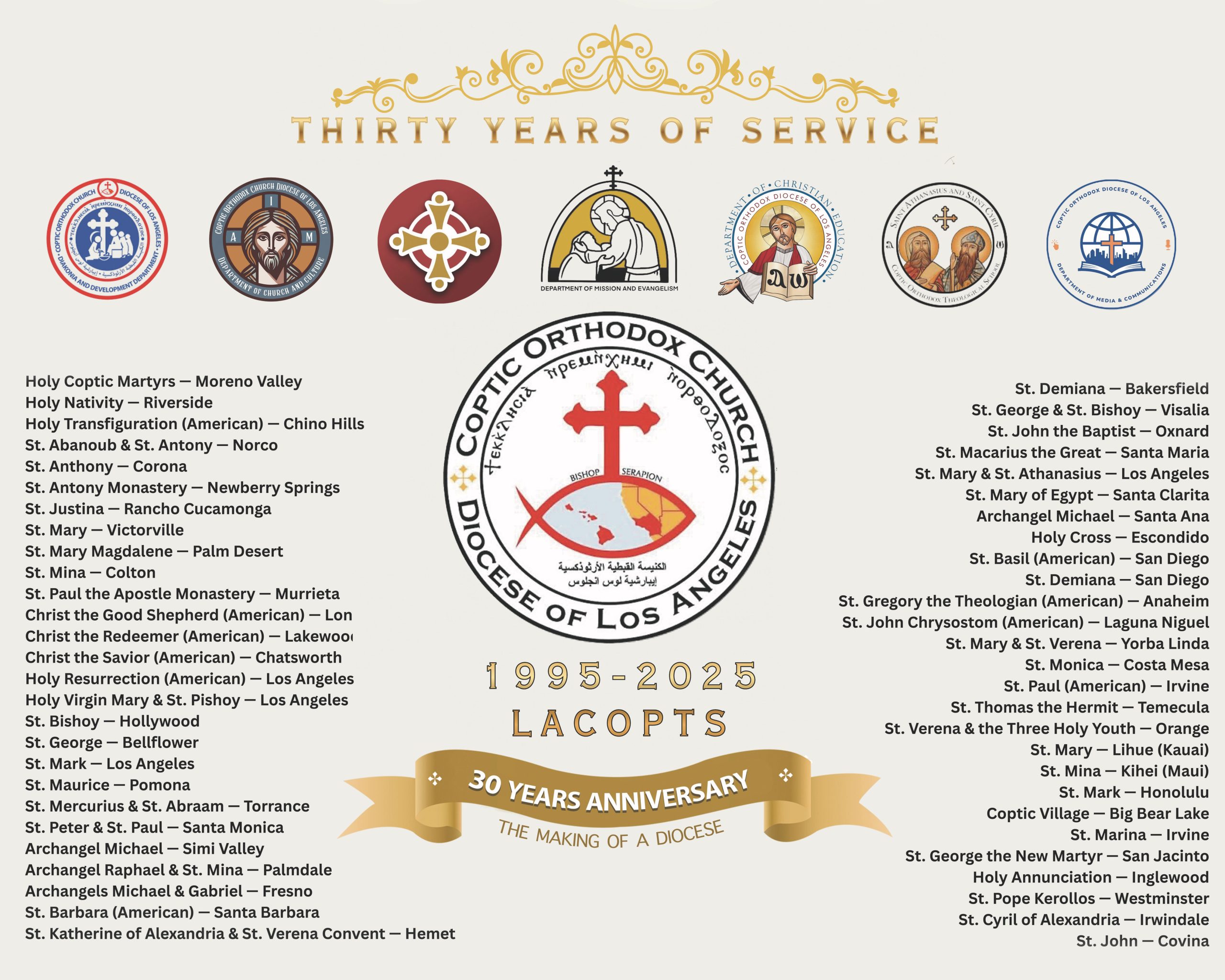 يُعد نيافة الحبر الجليل الانبا سرابيون أحد أبرز أعمدة الكنيسة القبطية الأرثوذكسية في المهجر بالولايات المتحدة الأمريكية، ورمزًا روحيًا وإنسانيًا يترك أثرًا عميقًا في حياة أجيال متعاقبة من أبناء الكنيسة داخل الولايات المتحدة وخارجها. وُلد نيافته في محافظة أسيوط بصعيد مصر، ونشأ في أسرة قبطية متدينة غرست فيه منذ الطفولة قيم الإيمان، والانضباط، وحب الخدمة. نشأ وسط عائلة مترابطة، وكان لتنشئته الأسرية، وعلاقته الوثيقة بإخوته، دورٌ أساسي في تكوين شخصيته المتزنة، التي جمعت بين الحزم الأبوي والاحتواء الإنساني، وهو ما انعكس لاحقًا على أسلوبه الرعوي القريب من القلوب. على الصعيد العلمي، التحق نيافته بكلية الطب جامعة أسيوط، حيث تخرج عام 1975 حاصلًا على بكالوريوس الطب والجراحة. ولم يكن تفوقه العلمي منفصلًا عن عمقه الروحي، إذ مارس مهنة الطب لعدة سنوات، واضعًا علمه في خدمة الإنسان، قبل أن يسمع نداء الرهبنة الذي شكّل نقطة التحول الكبرى في مسيرته. قادته هذه الدعوة إلى دير القديس الأنبا بيشوي بوادي النطرون، حيث ترهَّب في 6 أغسطس 1979 ، ثم رُسم كاهنًا عام 1981،وكلفة قداسة البابا شنودة الثالث بالخدمة في سويسرا عام ١٩٨٣لتبدأ مرحلة جديدة من العطاء الكنسي والخدمة الروحية. وفي ٢ يونية ١٩٨٥ قام قداسة البابا شنودة الثالث بسيامتة اسقفا عاما للخدمات. العامة والاجتماعية والمسكونية. ومع اتساع رقعة الكنيسة القبطية في المهجر، أسندت إليه مهام رعوية وخدمية متعددة، أهلته ليكون أحد الوجوه البارزة في تمثيل الكنيسة قبطيًا ومسكونيًا. وفي 23 ديسمبر 1995، جرى تجليس نيافته أسقفًا على إيبارشية لوس أنجلوس وجنوب كاليفورنيا وهاواي، وذلك في كنيسة السيدة العذراء مريم القبطية الأرثوذكسية بلوس أنجلوس – كاليفورنيا، ليصبح أول راعٍ لهذه الإيبارشية الوليدة آنذاك، واضعًا أسسها الروحية والإدارية، ومساهمًا في نموها واتساع خدمتها عبر عشرات الكنائس والمؤسسات. وفي 28 فبراير عام 2016، رُقي نيافته إلى رتبة مطران، تقديرًا لمسيرته الطويلة والمثمرة في الخدمة، ولما قدّمه من نموذج متزن يجمع بين الحفاظ على الإيمان الأرثوذكسي الأصيل والانفتاح الواعي على المجتمع الأمريكي. يأتي هذا الحوار الخاص بمناسبة مرور ثلاثين عامًا على تجليس نيافة الحبر الجليل الأنبا سرابيون على كرسي إيبارشية لوس أنجلوس وجنوب كاليفورنيا وهاواي، وهي مناسبة روحية وتاريخية تستدعي التوقف أمام مسيرة حافلة بالعطاء، والرعاية، والبناء، والعمل الدؤوب من أجل الإنسان والكنيسة. وفي هذه المناسبة المباركة، نبدأ حوارنا مع نيافتة، ونفتح فيه صفحات الذاكرة والرؤية مع راعٍ يعيش للكنيسة، ويبنى بالحب، ويقود بالحكمة، وما زال شاهدًا حيًا على خدمة تمتد عبر ثلاثة عقود من الإيمان والعمل. أولاً: النشأة والدعوة: س -نيافة الأنبا سرابيون، كيف أثّرت نشأتكم في صعيد مصر داخل أسرة قبطية متدينة على تكوين شخصيتكم الروحية والإنسانية؟ وكم عدد إخوتكم بالجسد؟ ج- نشأتُ في أسرةٍ متدينة؛ كان والدي طبيبًا، بينما تفرغت والدتي لتربيتنا والاهتمام بشؤون الأسرة. نحن سبعة أبناء: ستة أولاد وأخت واحدة، وكنتُ أنا الثالث بين إخوتي. حرصت الأسرة منذ الصغر على تنشئتنا تنشئة روحية سليمة، فكانت الكنيسة ومدارس الأحد جزءًا أساسيًا من حياتنا، خاصة بعد انتقالنا إلى أسوان حيث كان يعمل والدي هناك. وكنتُ حينها في الصف الرابع الابتدائي. ارتبطنا بخدمة مدارس الأحد في كنيسة العذراء بأسوان، وكانت لهذه الخدمة بصمة عميقة في تكويننا الروحي، إذ لم تكتفِ برعايتنا روحيا، بل وجّهتنا أيضًا إلى أهمية سرّ الاعتراف منذ سن مبكرة وبوعي روحي. ومن هنا كان اعترافي الأول على يد المتنيح القمص إرميا زكي. كان للاستقرار الأسري أثر بالغ في تكوينى الروحي، في ظل أبٍ واعٍ بدوره التربوي، وأمٍ محبة ومهتمة بأبنائها، ما وفر مناخًا روحيًا وإنسانيًا جميلًا داخل الأسرة. كما لعب افتقاد الآباء الكهنة دورًا مهمًا، لا سيما القمص بولس، ا