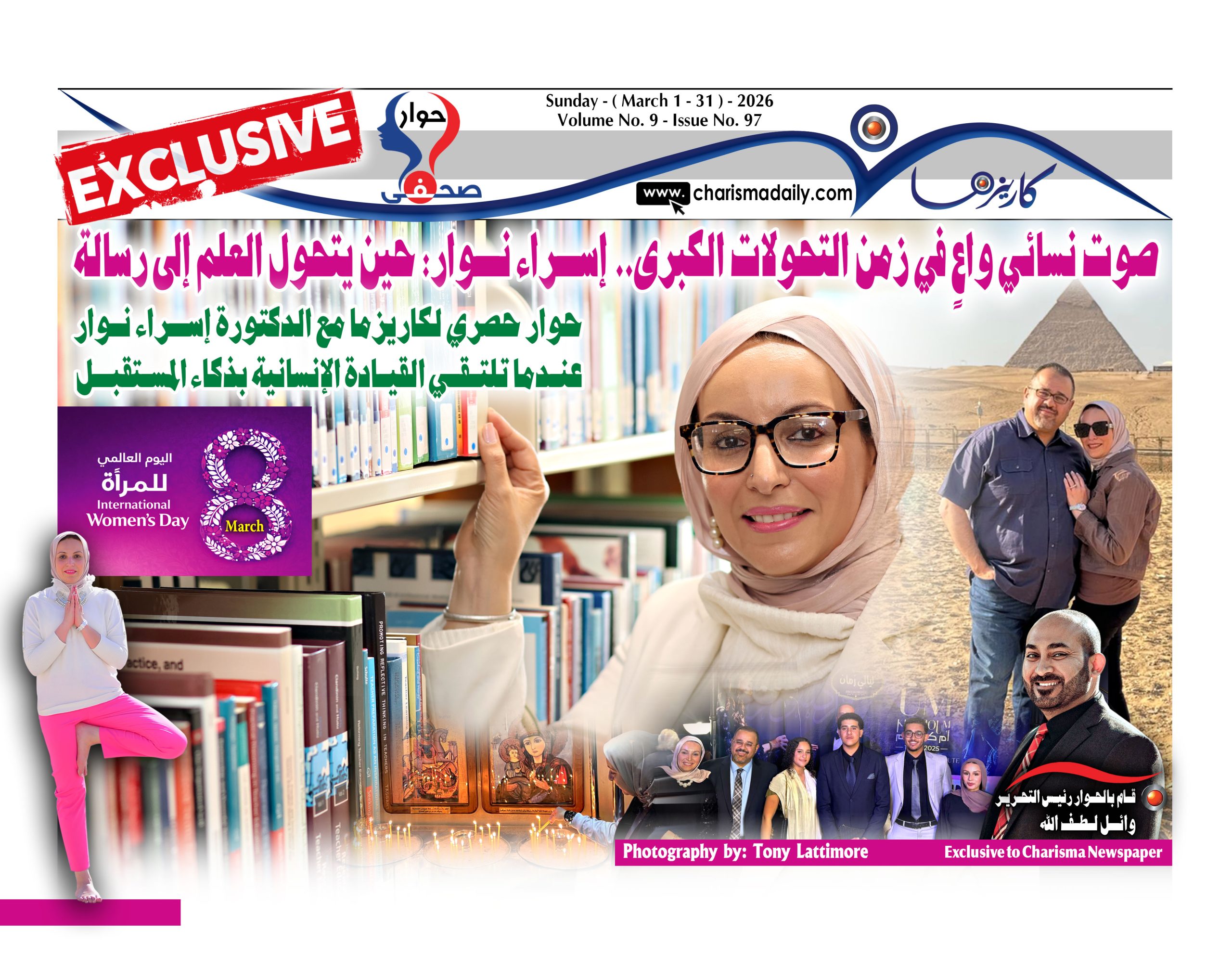 في كاريزما، لا نستضيف مجرد شخصية أكاديمية، بل نستضيف رؤية.. نتوجه بخالص الشكر والتقدير للدكتورة إسراء نوار على هذا الحوار الملهم الذي جسّد معنى القيادة الإنسانية في زمن الذكاء الاصطناعي، لقد أثرتِ صفحاتنا بفكرٍ عميق، ورؤية عالمية بجذور إنسانية، وتجربة قيادية تصنع الفرق. حضورك لم يكن مجرد مشاركة صحفية، بل إضافة نوعية تعكس نموذج المرأة المصرية العربية التي تجمع بين الهوية والابتكار، وبين العقل والقلب.